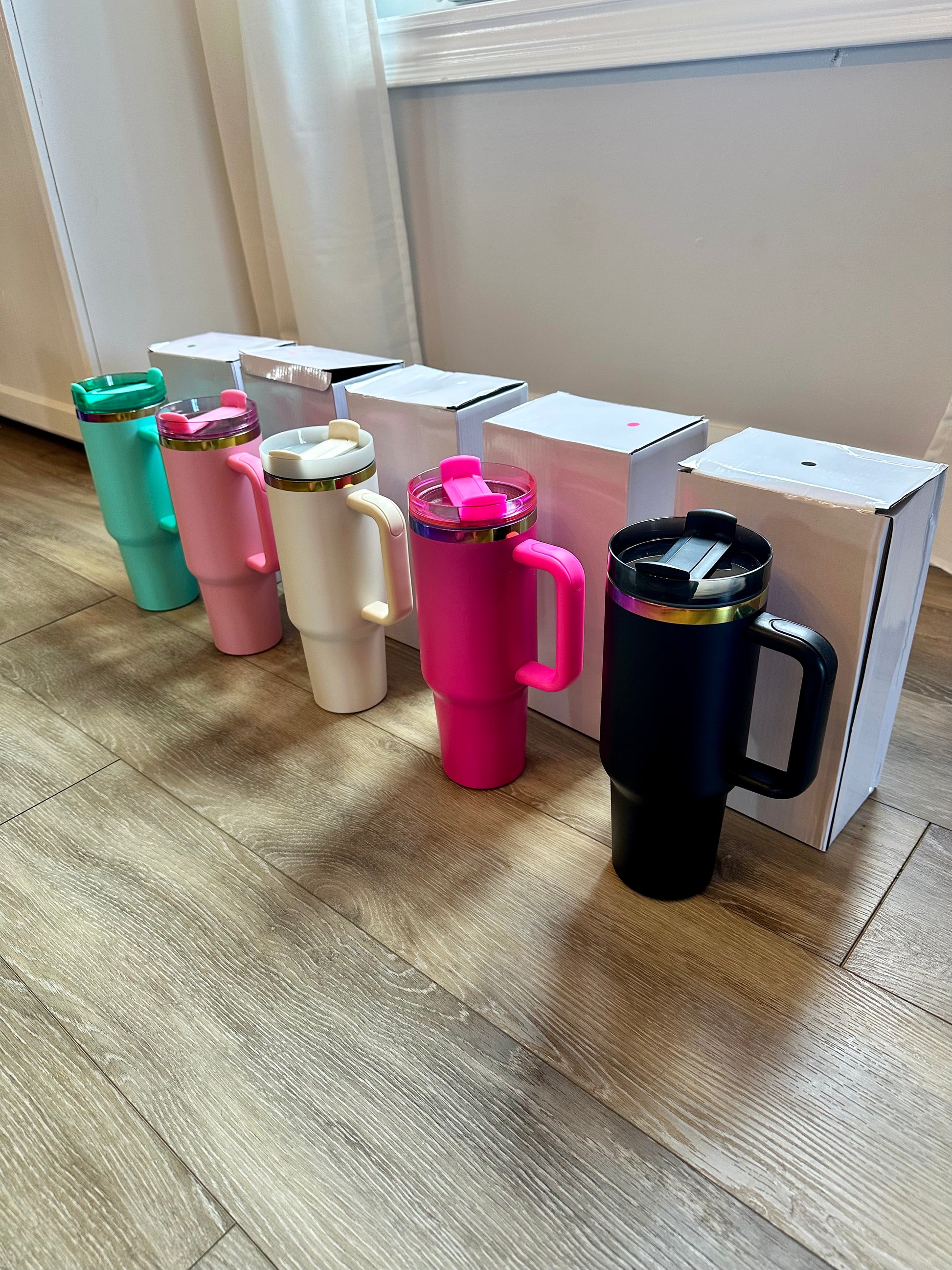 Stay hydrated in style with our personalized 40oz stainless steel tumblers! Perfect for on-the-go, these tumblers keep your drinks cold for hours and feature a durable handle + straw lid for everyday convenience.