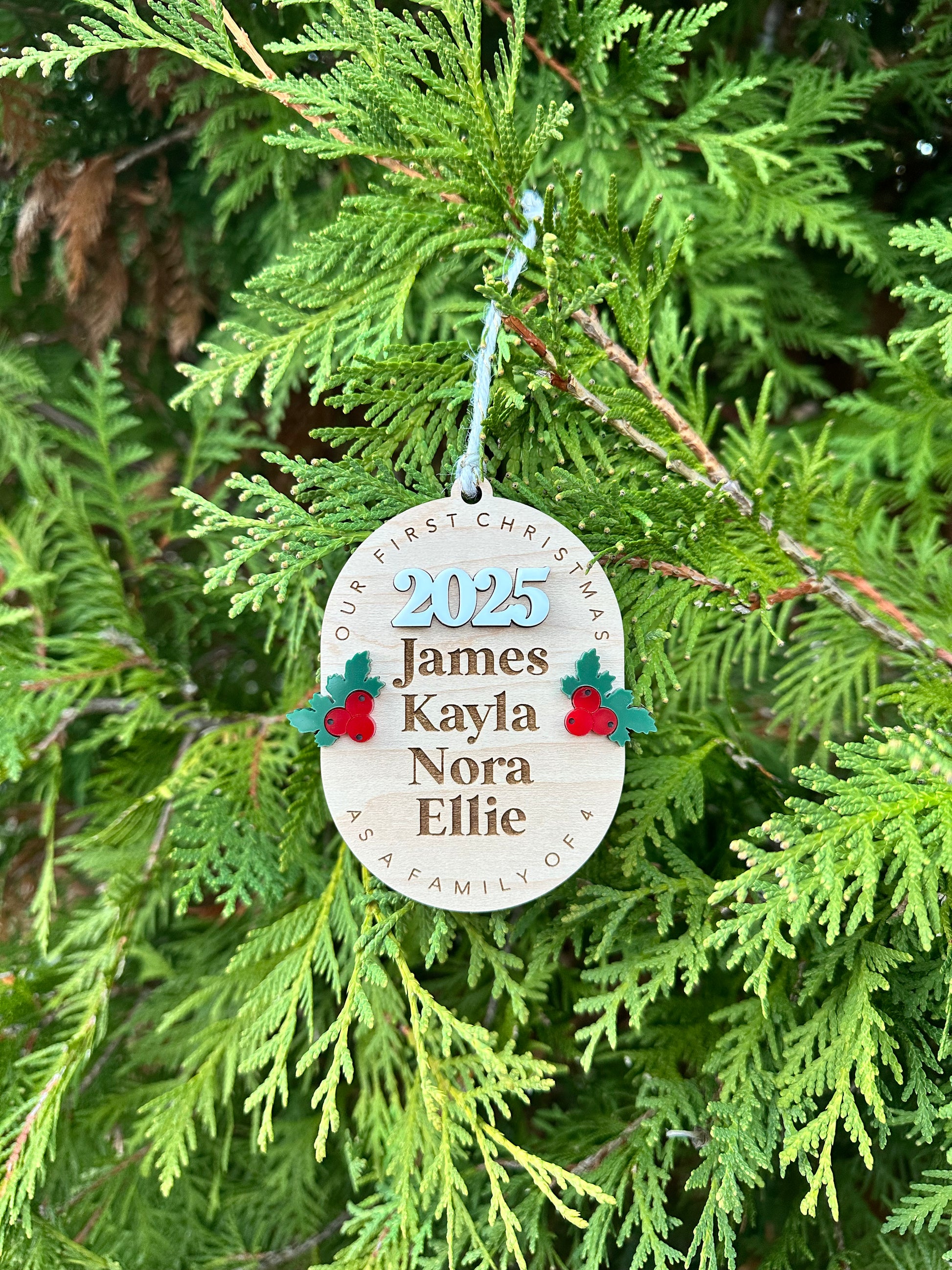 Mark your family’s biggest milestone with our First Year as a Family of # Ornament — a beautiful keepsake for your first Christmas together. Whether you’re a family of three, four, or more, this custom ornament is made to celebrate your love and togetherness.