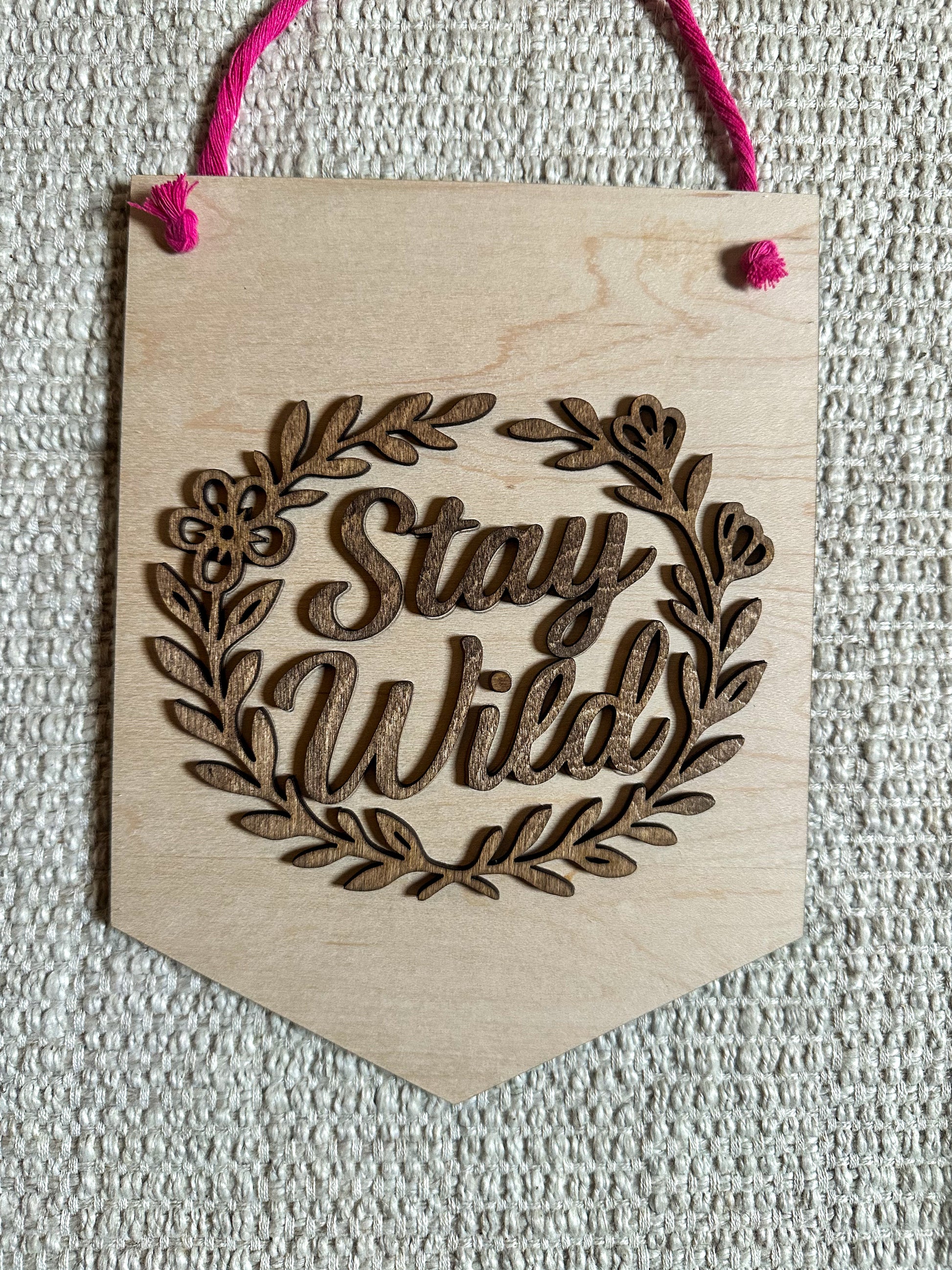 • Stay Wild — with a stained wood floral border